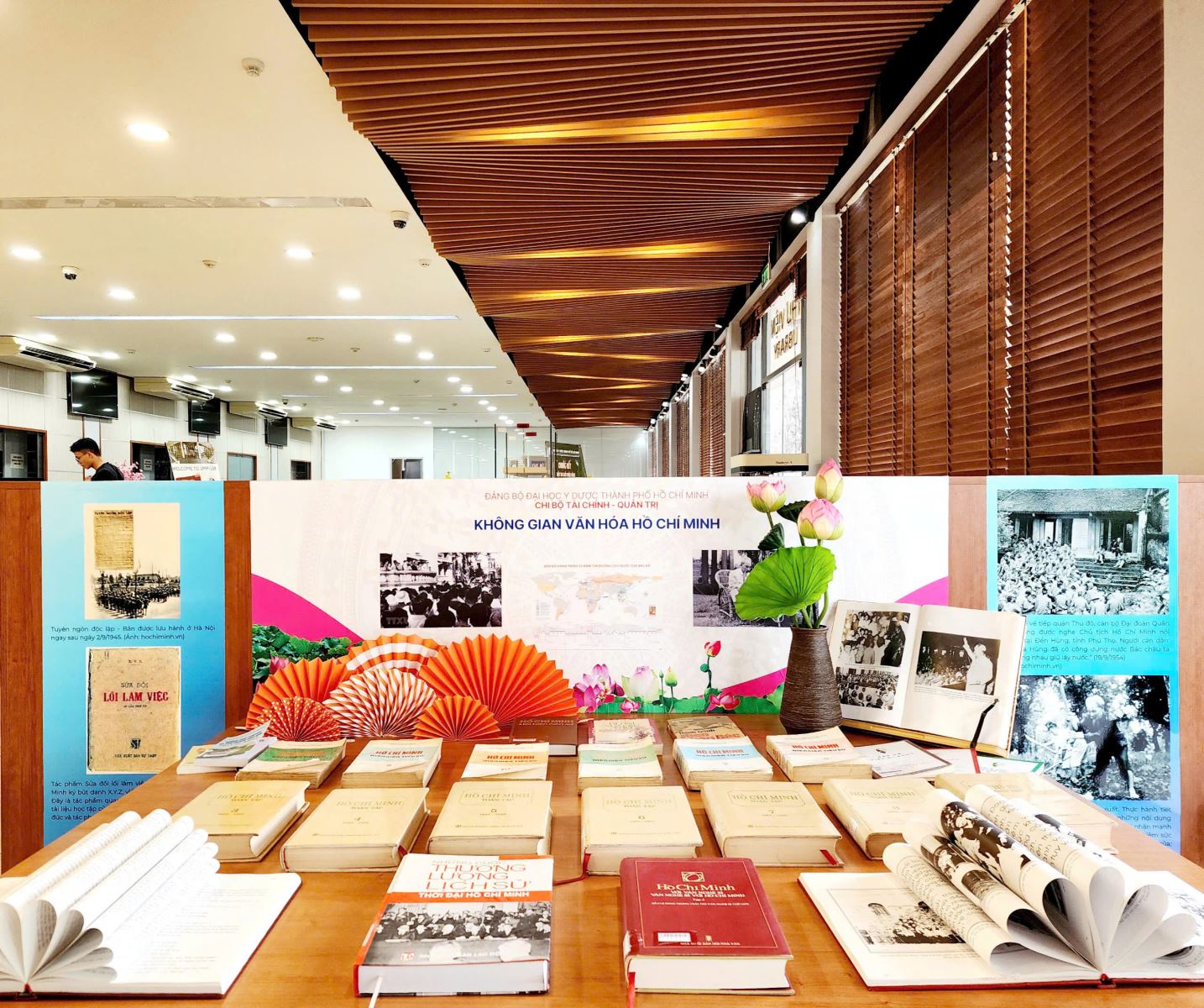Hòa trong dòng chảy đó, Chi bộ Tài chính - Quản trị - Đảng bộ Đại học Y Dược Thành phố Hồ Chí Minh ra mắt Không gian văn hóa Hồ Chí Minh do Chi bộ thực hiện tại Thư viện và phòng Kế hoạch Tài chính với các nội dung trưng bày, triển lãm gồm tư liệu ảnh hoạt động, các tác phẩm viết về Hồ Chí Minh, về chủ đề học tập và làm theo tấm gương đạo đức Hồ Chí Minh, các tác phẩm văn học nghệ thuật viết về Người như Hồ Chí Minh toàn tập, Hồ Chí Minh biên niên tiểu sử, Học tập đạo đức Bác Hồ, Những mẫu chuyện về tấm gương đạo đức Hồ Chí Minh, Hành trình theo chân Bác, Đi tìm xuất xứ thơ Hồ Chí Minh, Truyện về Hồ Chí Minh, bộ Nước non vạn dặm, Những cuộc thương lượng lịch sử thời đại Hồ Chí Minh…. Ngoài ra, Đảng viên, CBVC-NLĐ, sinh viên, học viên có thể tìm đọc các tác phẩm khác trên các cơ sở dữ liệu của Thư viện.