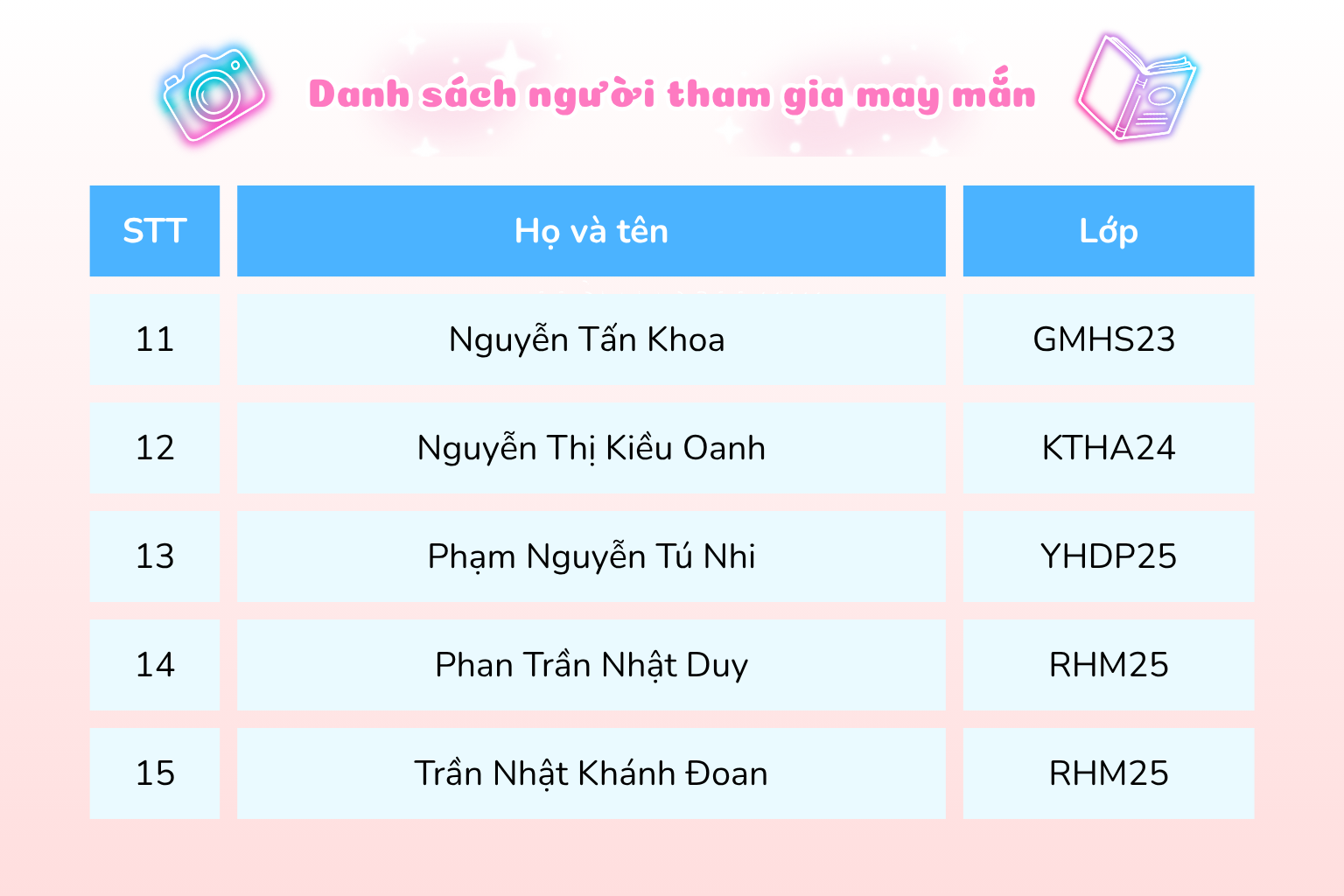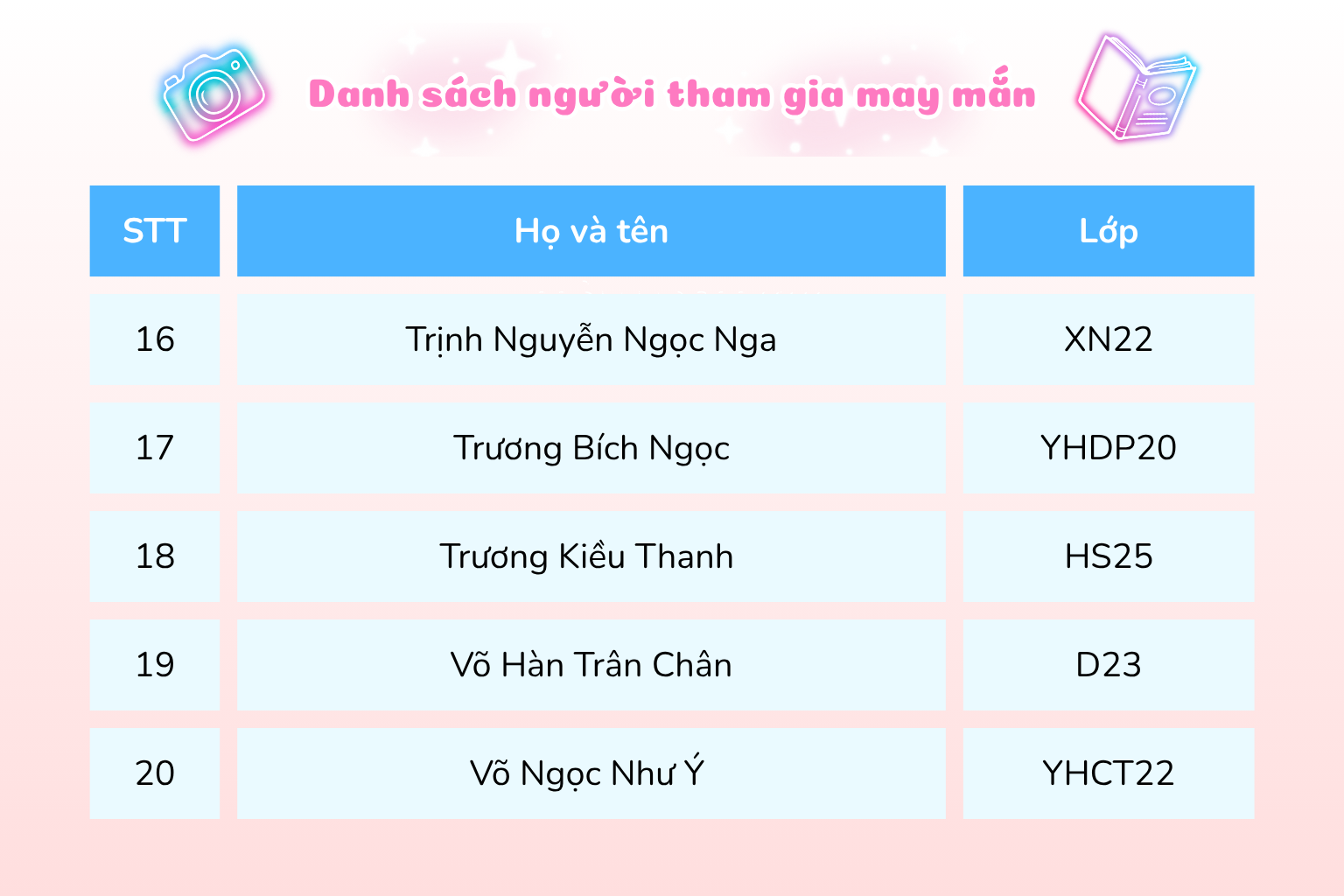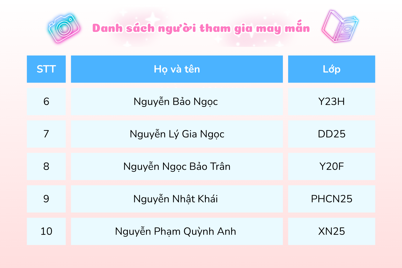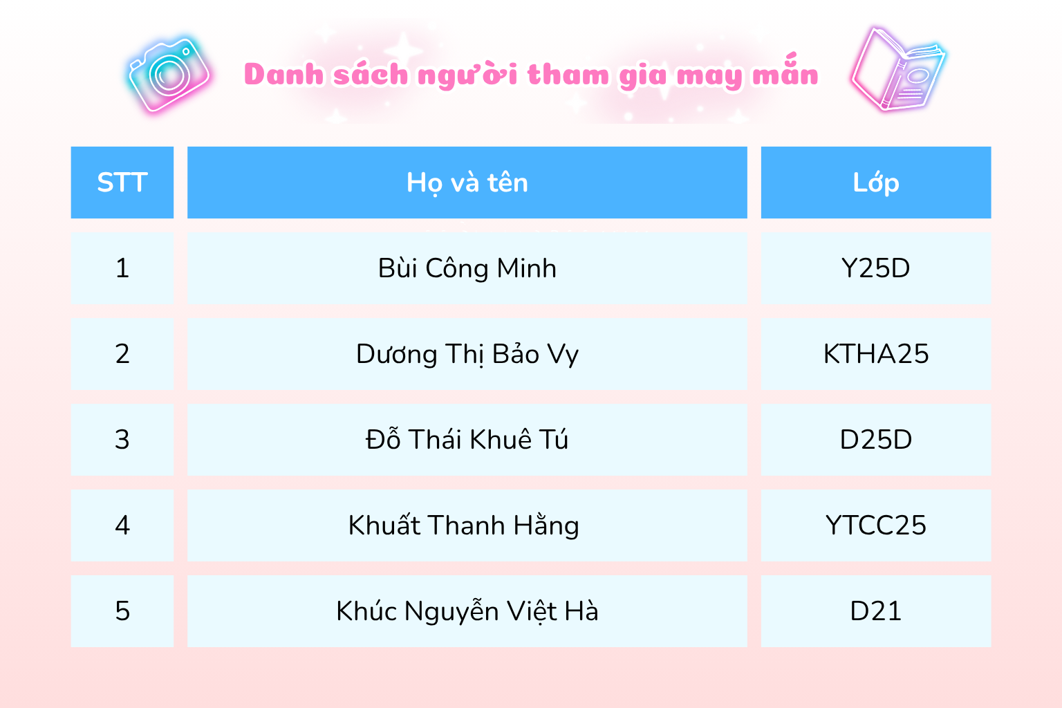 Ban Tổ chức xin chúc mừng các bạn có tên trong danh sách bên dưới: